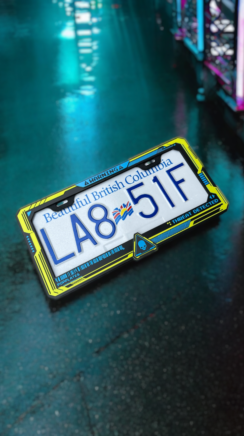 Perfect for gamers, street racers, and fans of cyberpunk style — this PopPlate makes your car feel like part of the game. Whether you’re cruising downtown or parked at a meet, your ride will glow with attitude.