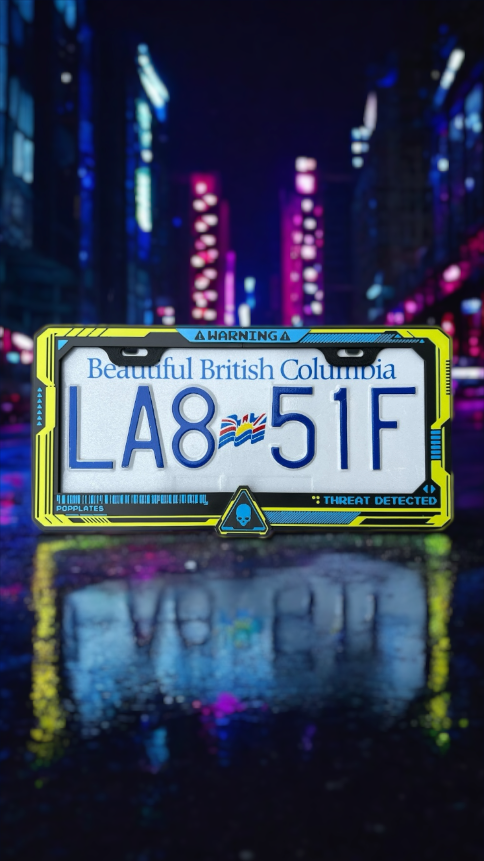 Take your ride straight into Night City with our Cyberpunk 2077–inspired PopPlate. Bold edges, glowing vibes, and dystopian detail — this frame is built for those who live life in the fast lane.